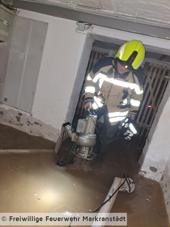 Die eintreffenden Einsatzkräfte fanden eine geplatzte Wasserleitung im öffentlichen Bereich vor. Aufgrund der Nähe zu einem angrenzenden Gebäude lief in selbigem der Keller voll. Die Kameradinnen und Kameraden sicherten den Bereich und setzten zwei Tauchpumpen zur Entwässerung des Kellers ein. Nach Abschluss der Arbeit konnte die Einsatzstelle an den Netzbetreiber übergeben werden.