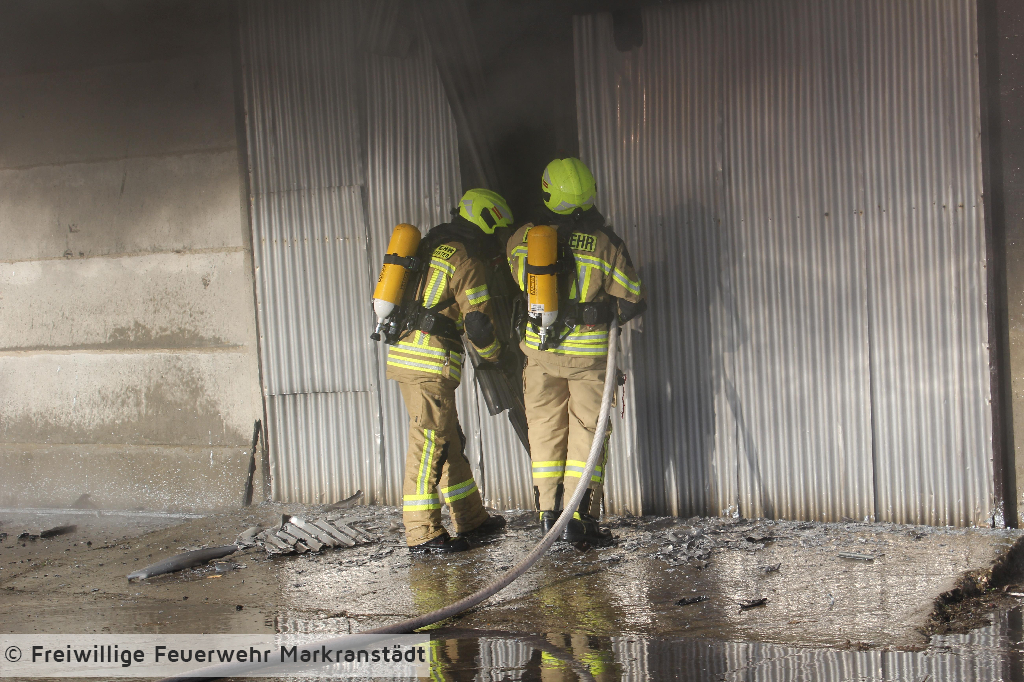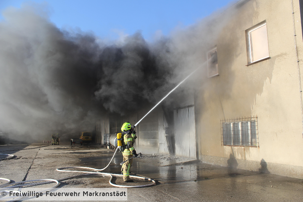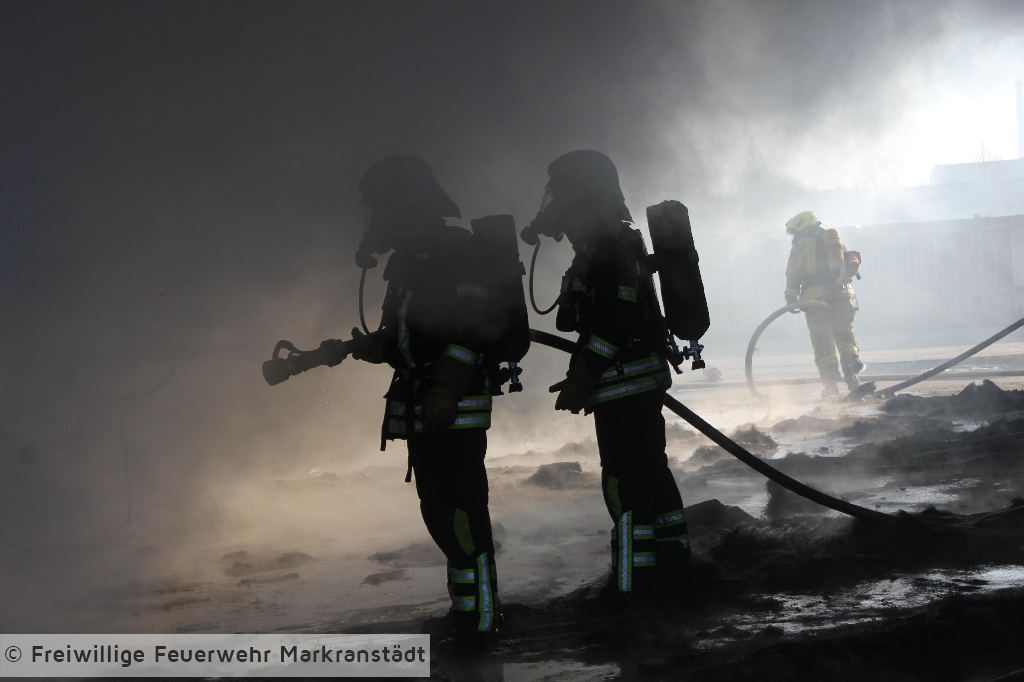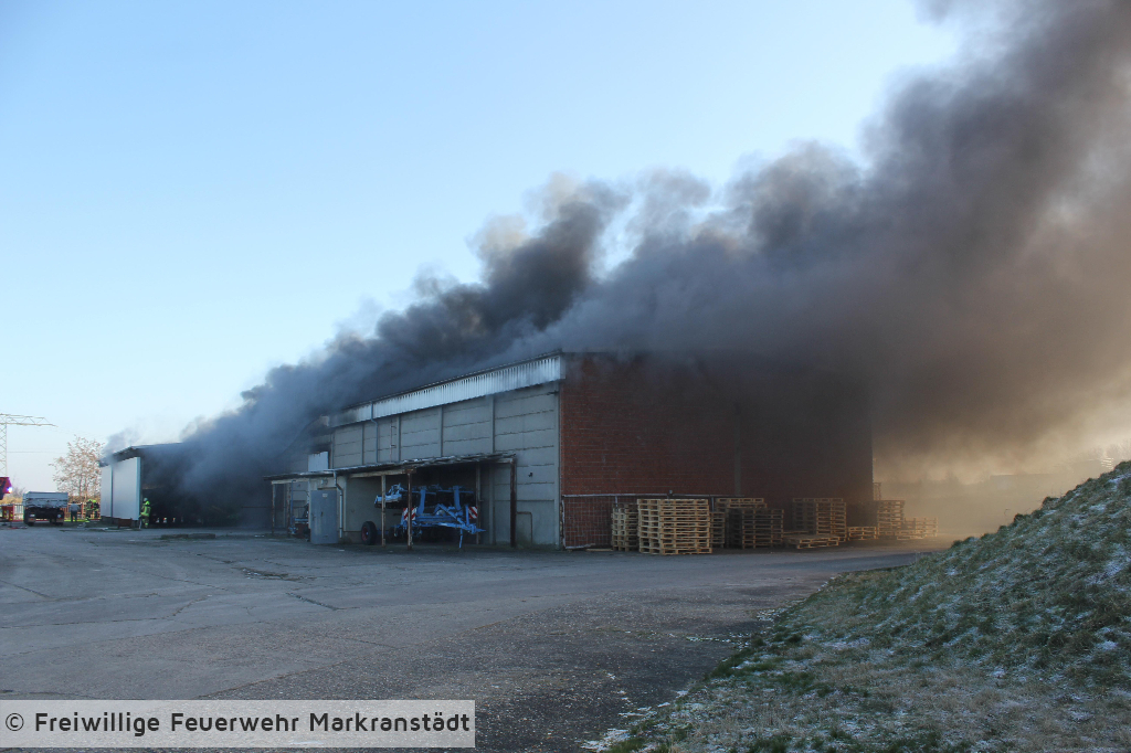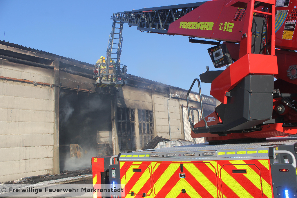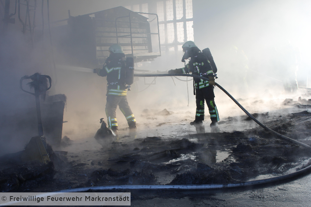 Eine Lagerhalle in der Größe von ca. 50x20 Metern stand in Teilbereichen in Flammen.
