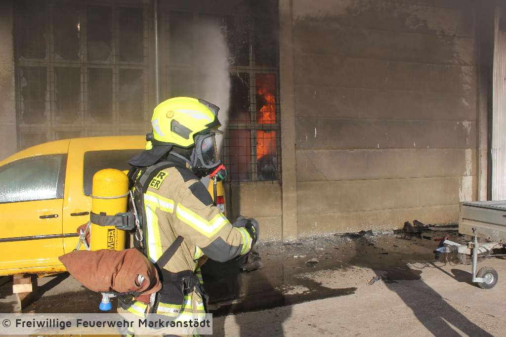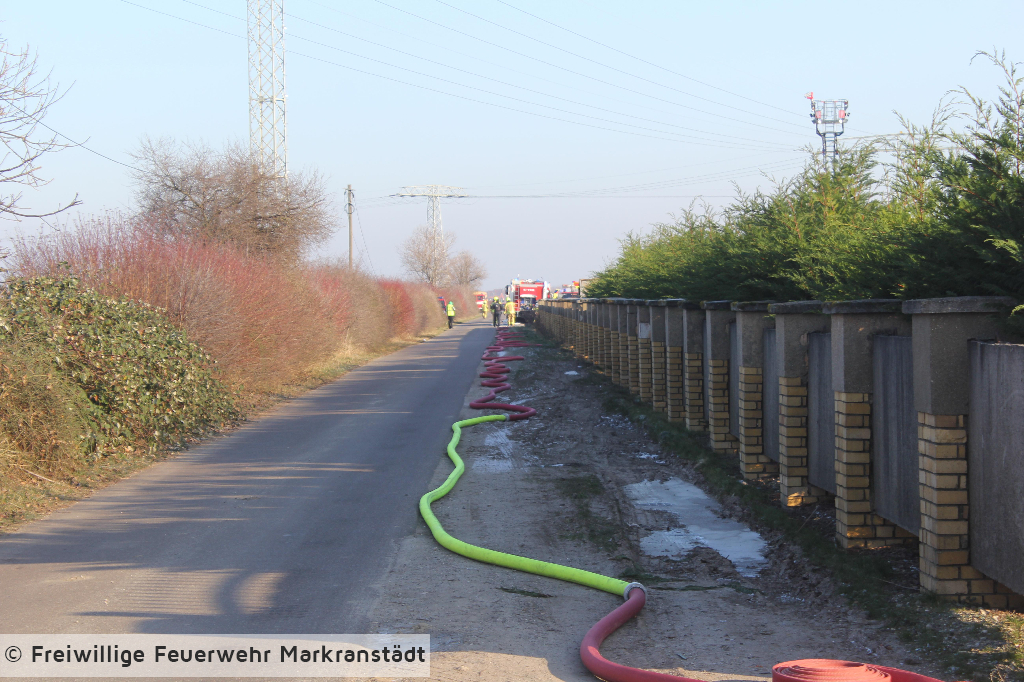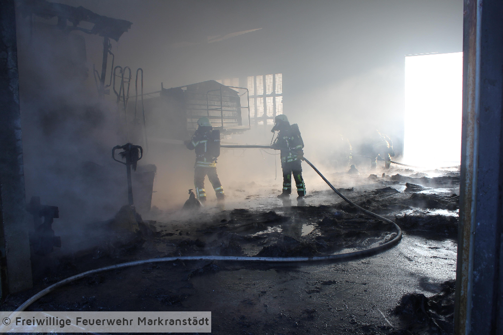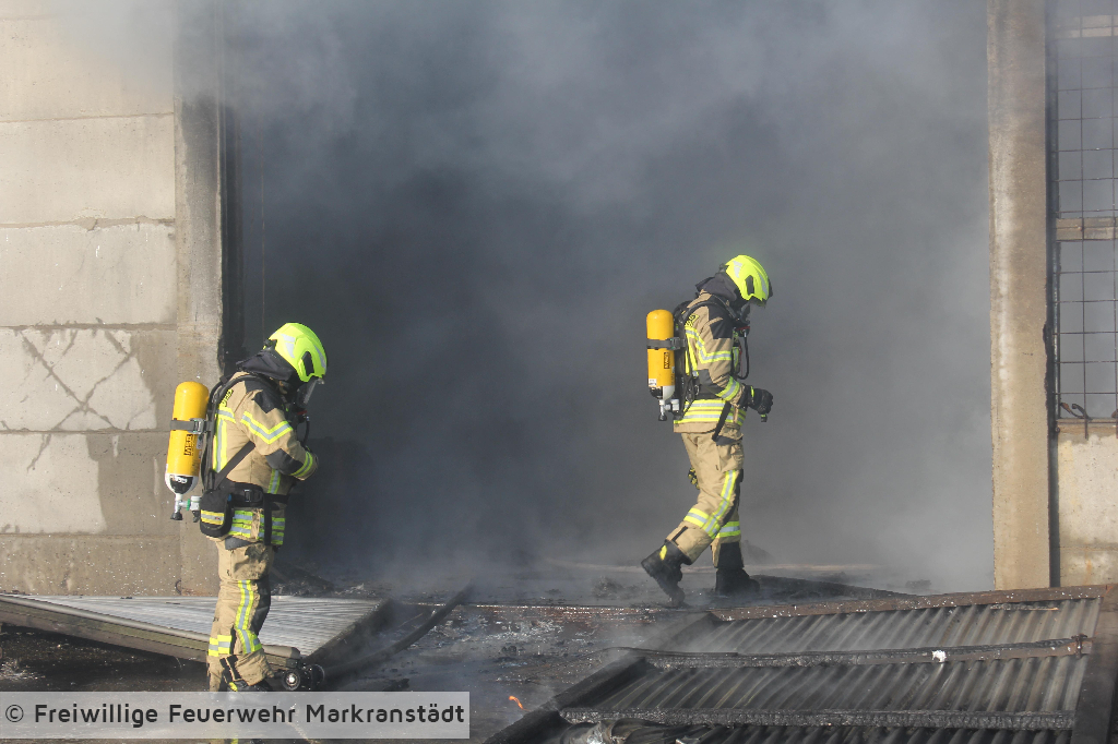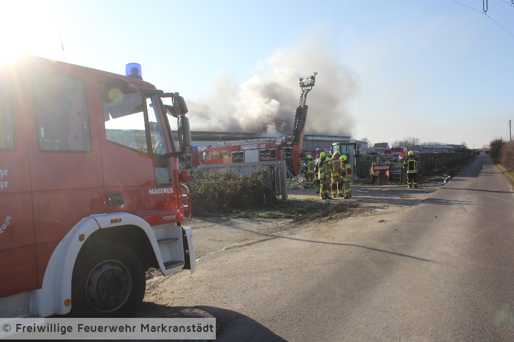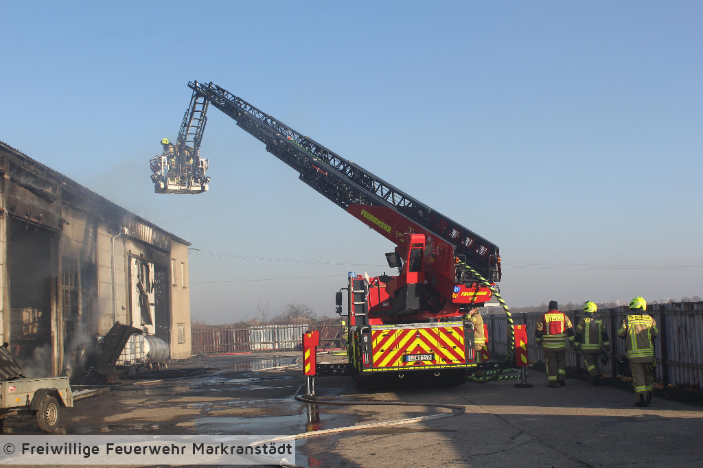 Eine Lagerhalle in der Größe von ca. 50x20 Metern stand in Teilbereichen in Flammen.