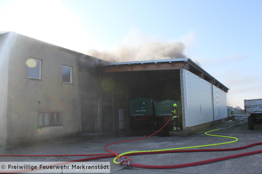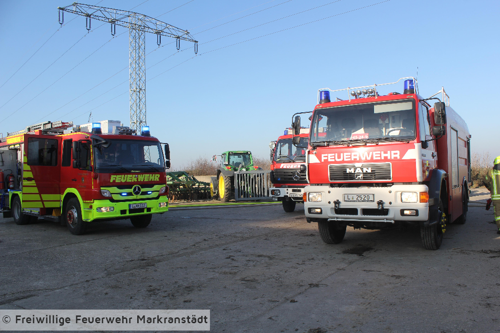 Die Feuerwehren Markranstädt, Lindennaundorf und Großlehna wurden heute gegen 11:45 Uhr zu einem Brand einer Landmaschinenhalle in die Markranstädter Nordstraße alarmiert.