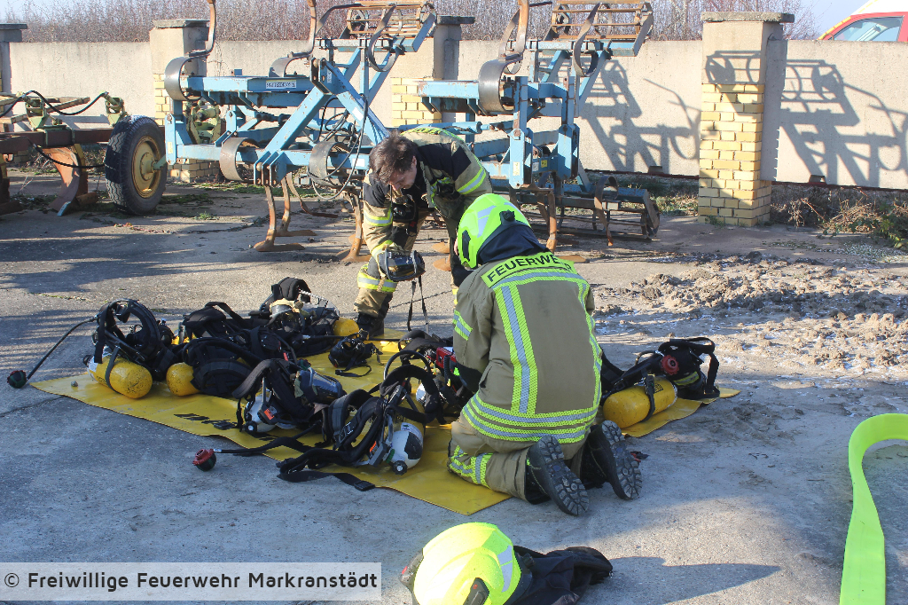 Zum Austausch der gebrauchten Atemschutzgeräte wurde das Feuerwehrtechnische Zentrum angefordert.