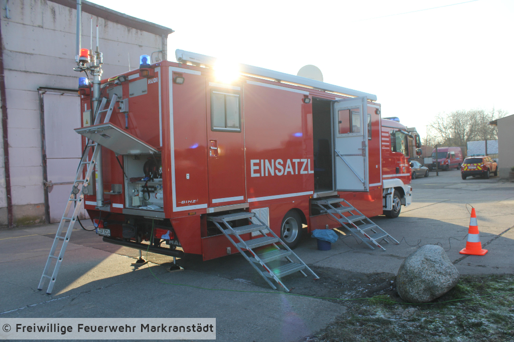 Durch die mitalarmierte Drohnenstaffel des Landkreises wurden verschiedene Aufnahmen aus der Luft gemacht. So konnten die Einsatzkräfte gezielt eingesetzt werden. Ebenfalls im Einsatz war der ELW 2 des Landkreises sowie der stellvertretende Kreisbrandmeister Alexander Hecking, der die Einsatzleitung vor Ort unterstützte. Die Bürgermeisterin der Stadt Markranstädt und ihre Pressesprecherin machten sich ebenfalls ein Bild von der Lage vor Ort.