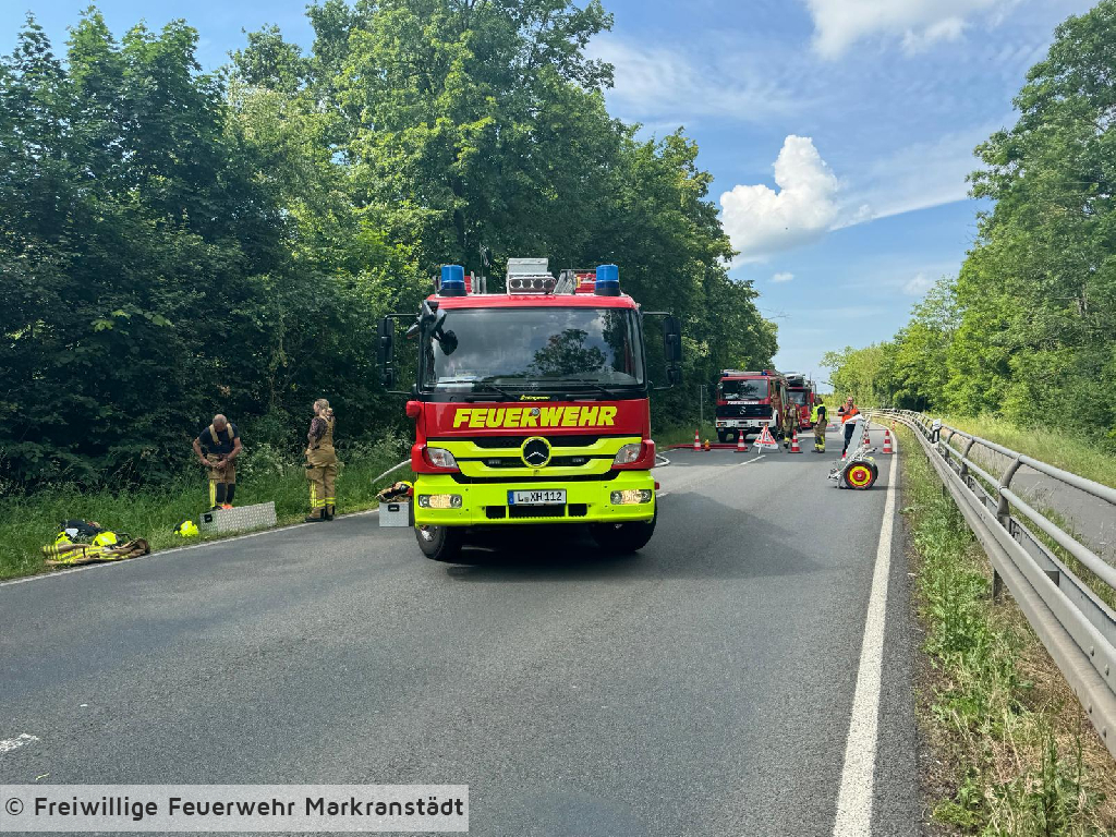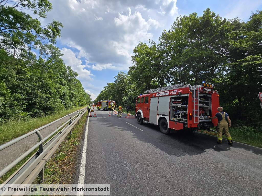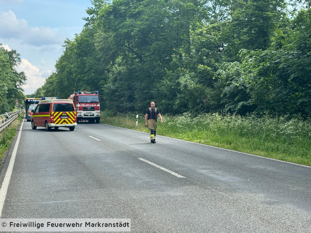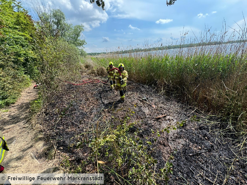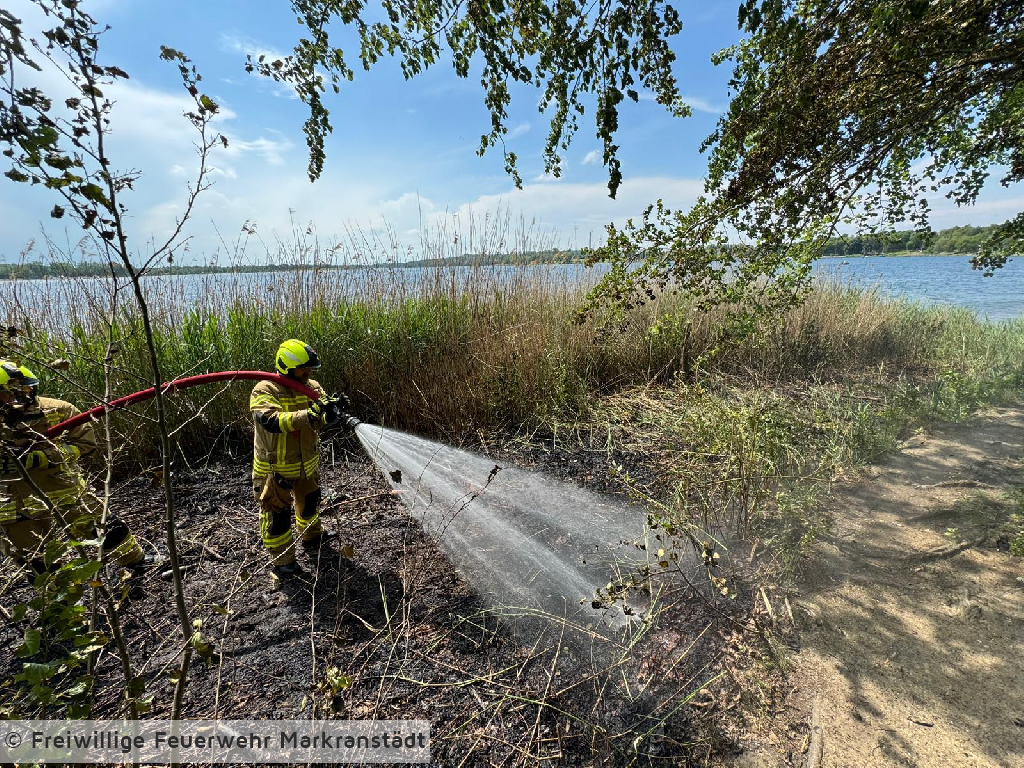 Am Einsatzort eingetroffen bestätigte sich die Alarmmeldung. Aus ungeklärter Ursache gerieten mehrer Stellen der Böschung des Kulkwitzer Sees entlang der B87 in Brand. Durch zügiges Eingreifen der Einsatzkräfte konnte eine weitere Ausbreitung verhindert werden.