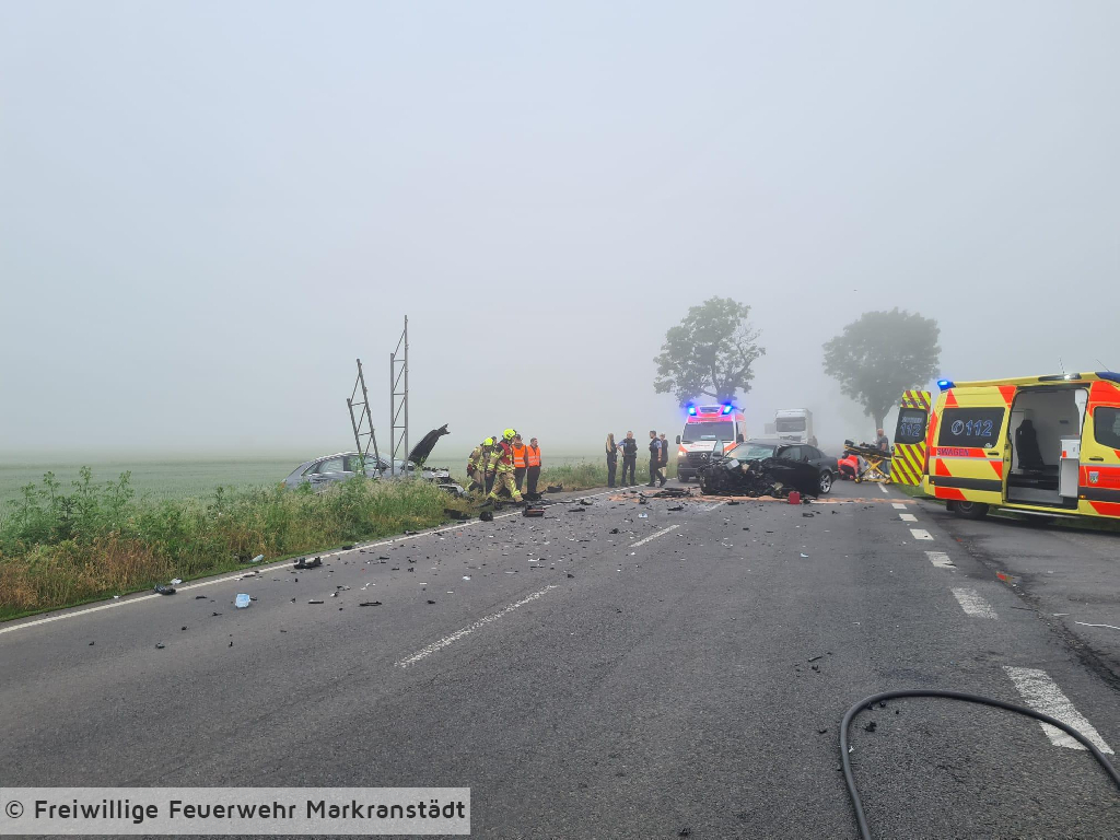 Die eintreffenden Einsatzkräfte fanden am Einsatzort zwei verunfallte Pkw vor. Die Kameradinnen und Kameraden schalteten die Fahrzeuge stromlos und banden auslaufende Betriebsstoffe. Im Anschluss wurde die Einsatzstelle an die Polizei übergeben.