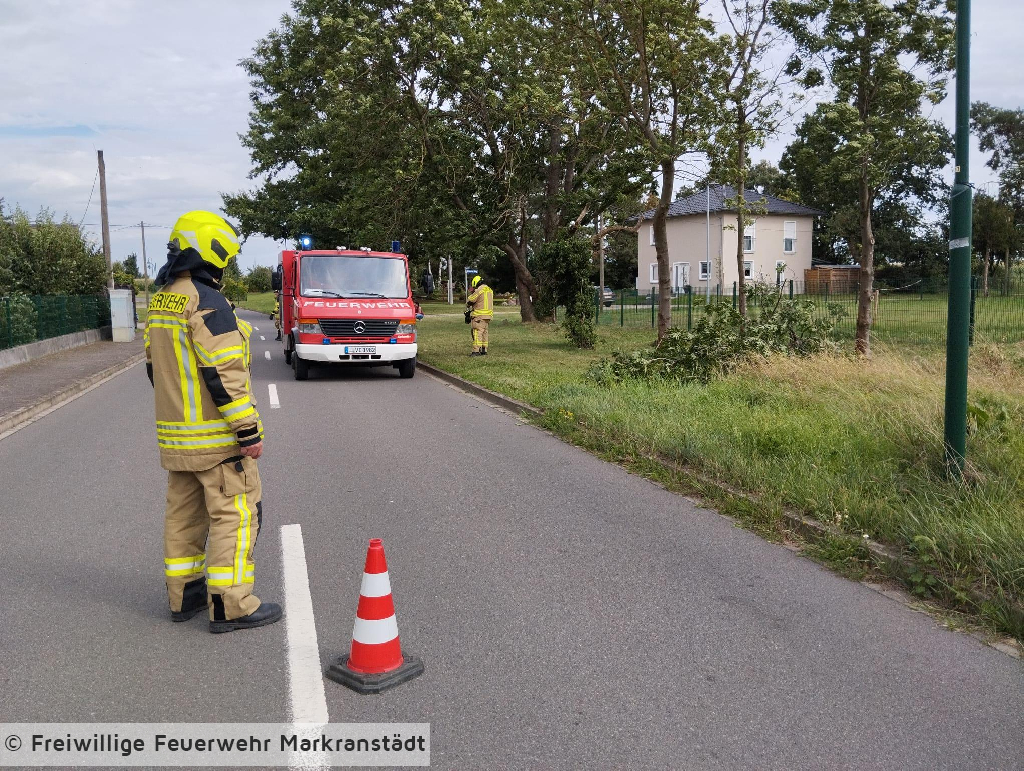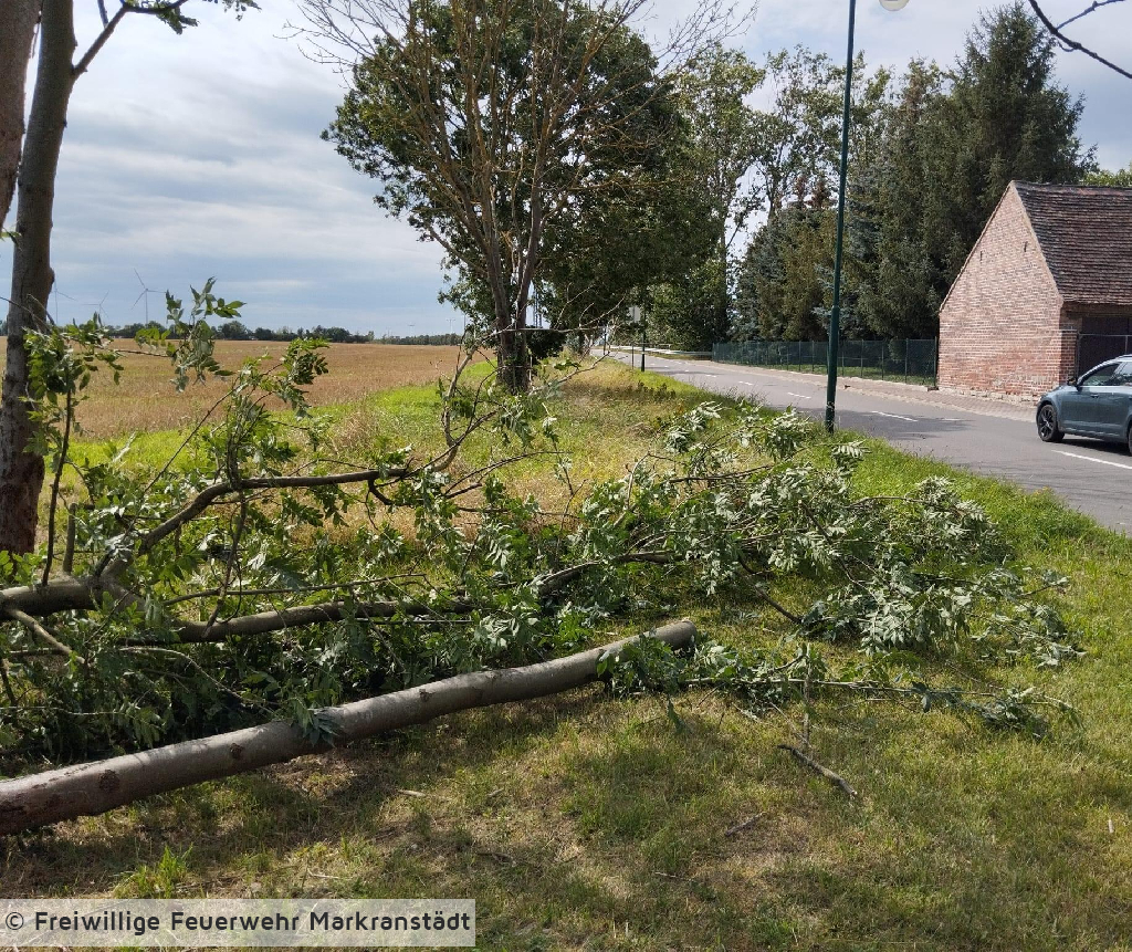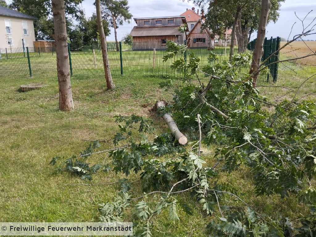 Beim Eintreffen an der Einsatzstelle bestätigte sich die Alarmmeldung, ein Baum lag auf der Straße. Mittels Kettensäge konnte der Baum zerkleinert und im Anschluss beräumt werden.