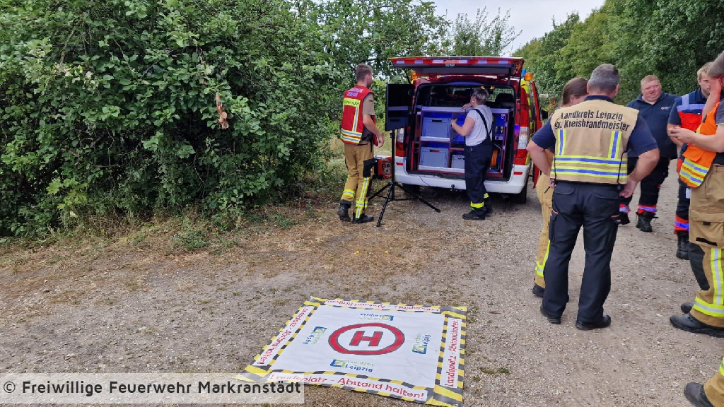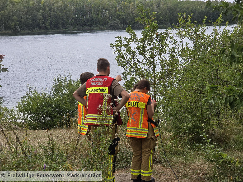 Die Kameradinnen und Kameraden der Freiwilligen Feuerwehr Markranstädt sowie die Kräfte der Berufsfeuerwehr Leipzig wurden zur Suche nach einer vermissten Person an den Kulkwitzer See gerufen. Unterstützt wurden sie dabei von der Drohnenstaffel des Landkreis Leipzig und der Wasserschutzpolizei. Mit vereinten Kräften und Mitteln wurde flächendeckend auf, neben und über dem Wasser gesucht. Durch das persönliche Erscheinen der vermissten Person konnte nach ca. 45 Minuten Suche Entwarnung gegeben werden. Die alarmierten Kräfte fuhren ihre Ausgangspunkte wieder an.