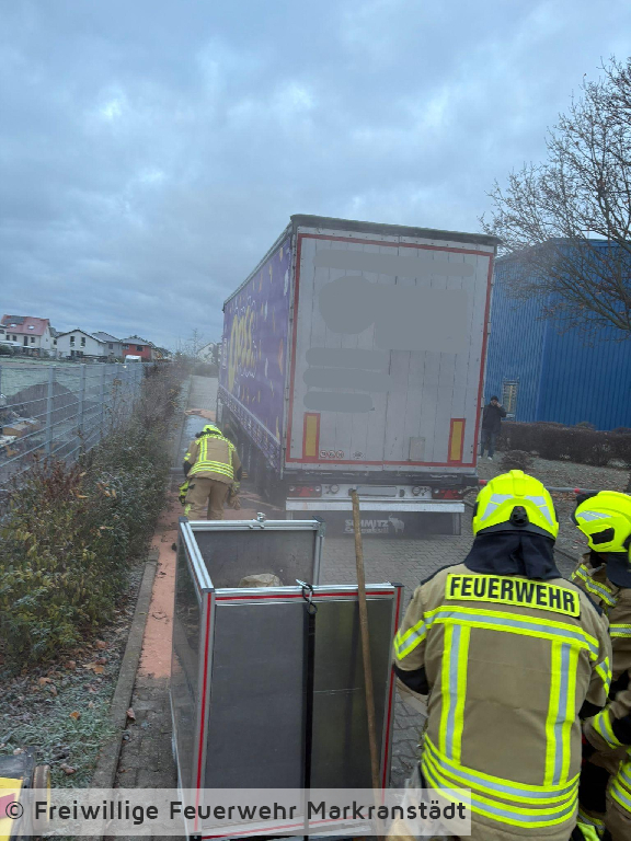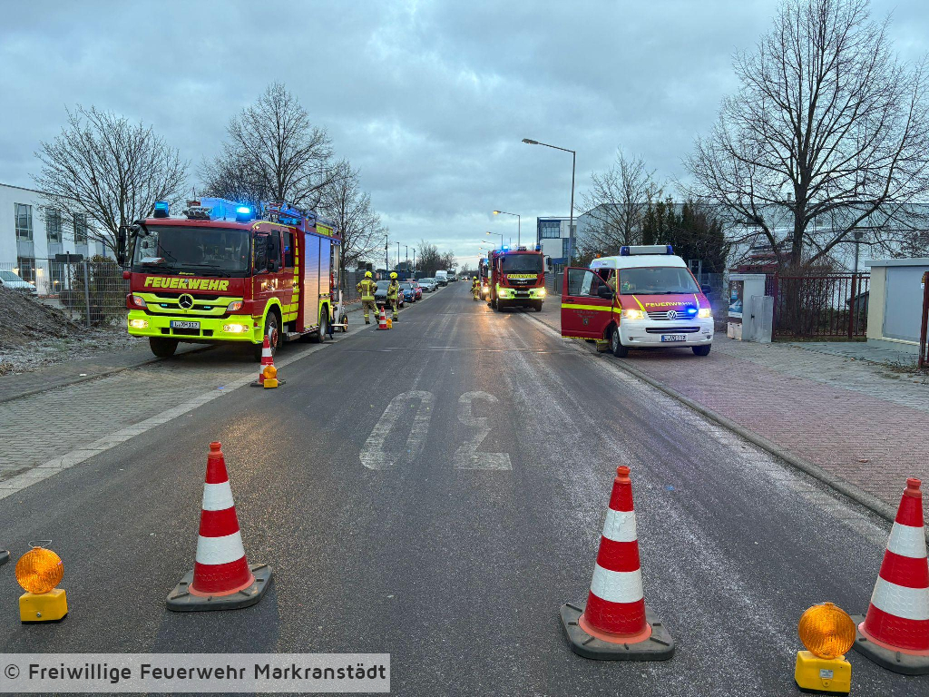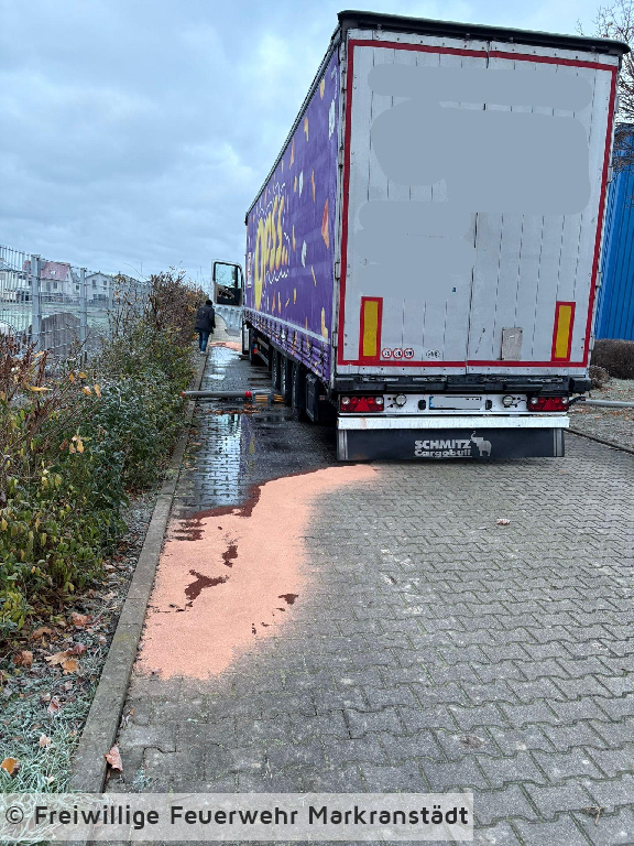 Am Freitagmorgen wurde die Feuerwehr zu einem Einsatz aufgrund eines aufgerissenen Dieseltanks an einem Lastkraftwagen alarmiert. Der Vorfall ereignete sich gegen 07:15 Uhr, als aus bisher unbekannter Ursache der Tank des Fahrzeugs beschädigt wurde und größere Mengen Diesel austraten. Beim Eintreffen der Einsatzkräfte war der Dieseltank bereits leer gelaufen. Eine zunächst alarmierte Gefahrguteinheit konnte nach erster Lageerkundung wieder abbestellt werden. Zur technischen Unterstützung wurde eine Spezialunternehmen nachgefordert. Die Feuerwehr begann umgehend mit Maßnahmen zur Eindämmung der Umweltgefahr. Mit Hilfe von Ölsperren und Bindemitteln wurde der ausgelaufene Kraftstoff gesichert und eine Ausbreitung verhindert. Gegen 08:24 Uhr konnten die Einsatzkräfte „Abschluss der Maßnahmen“ melden. Die Einsatzstelle wurde anschließend an den Eigentümer des Objektes übergeben, der die weitere Abwicklung gemeinsam mit dem Spezialunternehmen übernahm.