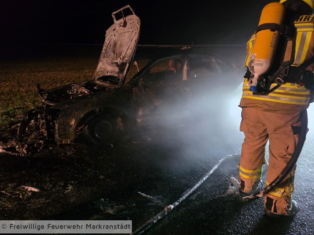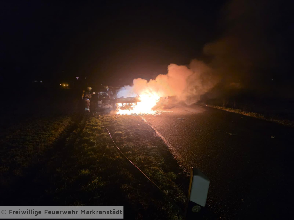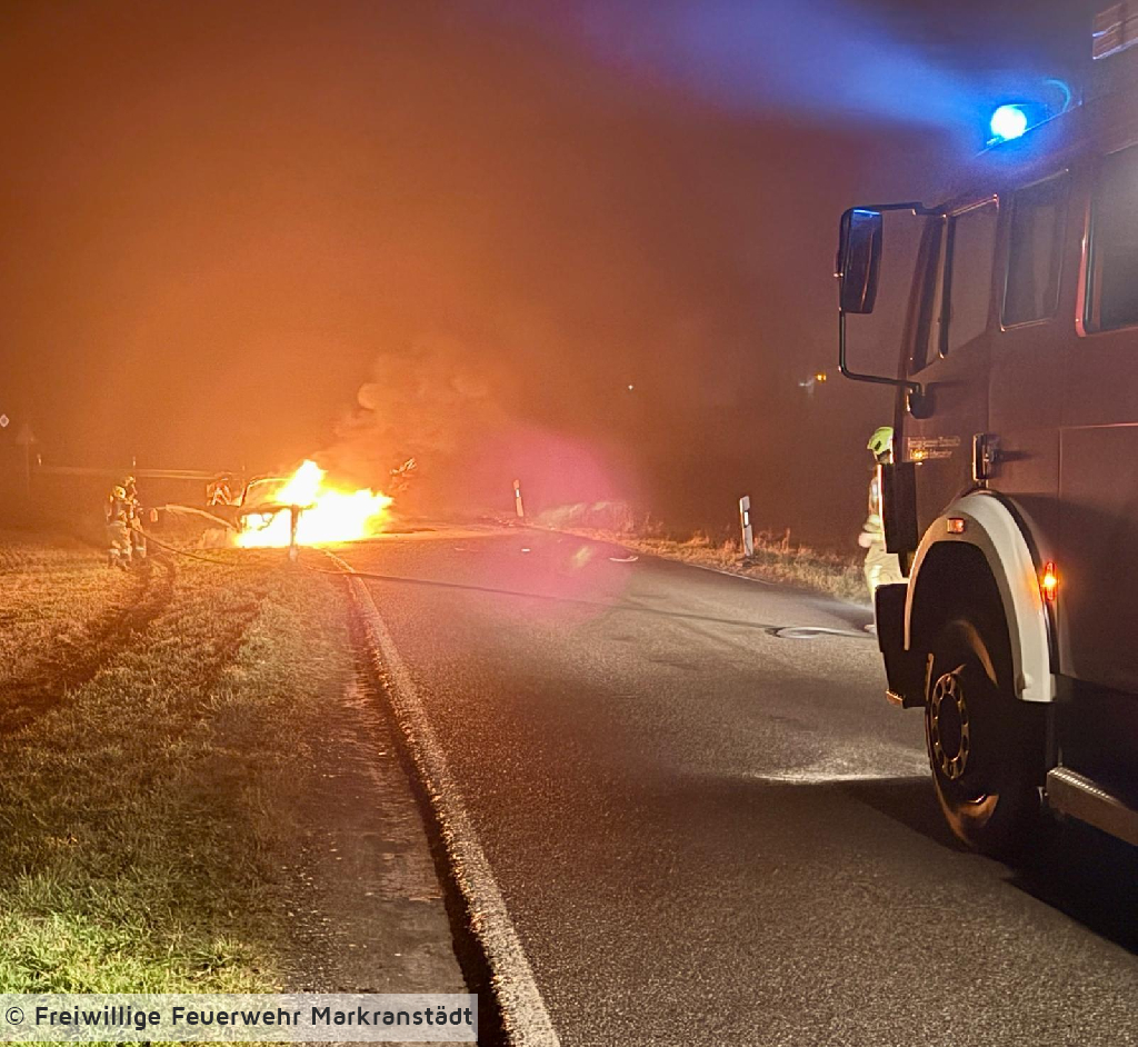 In den frühen Morgenstunden des 28. Dezember 2025 wurde die Feuerwehr zu einem PKW-Brand alarmiert. Der Einsatz ereignete sich gegen 04:17 Uhr. Beim Eintreffen der ersten Einsatzkräfte stand der Pkw bereits in Vollbrand. Ein Trupp unter Atemschutz ging umgehend zur Brandbekämpfung vor und löschte das Fahrzeug mit einem C-Rohr. Gegen 05:00 Uhr war das Feuer unter Kontrolle, sodass Nachlöscharbeiten durchgeführt wurden. Um 05:30 Uhr konnte schließlich „Brand aus“ gemeldet werden. Die Einsatzstelle wurde anschließend an die Polizei übergeben. Nach Abschluss aller Maßnahmen kehrten die eingesetzten Kräfte wieder zum Ausgangspunkt zurück.