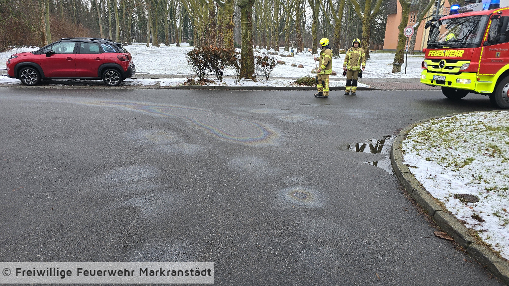 Am Dienstagvormittag wurde die Feuerwehr zu einer Öl- bzw. Dieselspur im Stadtgebiet von Markranstädt alarmiert. Im Kurvenbereich erstreckte sich auf einer Länge von etwa 50 Metern eine Verunreinigung der Fahrbahn. Die Einsatzkräfte sicherten die Gefahrenstelle ab und banden die ausgelaufenen Betriebsstoffe mit Bioversal, um eine weitere Gefährdung für den Straßenverkehr und die Umwelt zu verhindern. Nach Abschluss der Maßnahmen wurde die Einsatzstelle an die Polizei übergeben.