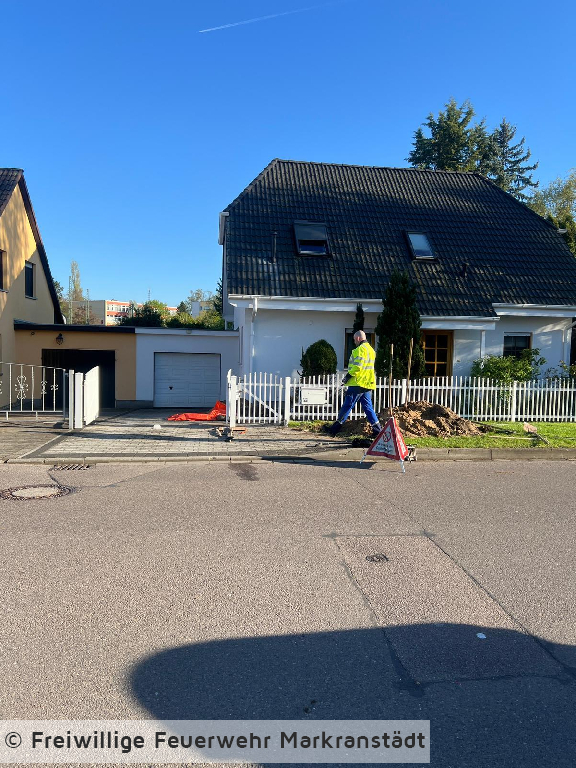 Im Zuge von Schachtarbeiten wurde eine Gasleitung beschädigt. Aufgrund des Gasaustritts sicherten die ersten eintreffenden Einsatzkräfte den Gefahrenbereich umgehend großräumig ab und forderten den zuständigen Gasversorger zur Einsatzstelle nach. Nach Eintreffen des CBRN-Erkunder sowie eines ABC-Fachberaters erfolgten Messungen im betroffenen Bereich, um mögliche Gefahren für Anwohner und Einsatzkräfte auszuschließen. Parallel dazu wurden die Schachtarbeiten durch die verantwortliche Fachfirma fortgeführt, um die beschädigte Leitung freizulegen und einen Zugang für die Reparaturmaßnahmen zu schaffen. Gegen 18:46 Uhr konnte die Gasleitung durch den Energieversorger Mitgas erfolgreich abgequetscht und der Gasaustritt gestoppt werden. Nach abschließender Messung bestand keine weitere Gefahr. Der Einsatz konnte daraufhin beendet und die Kräfte ihren Ausgangspunkt wieder anfahren.