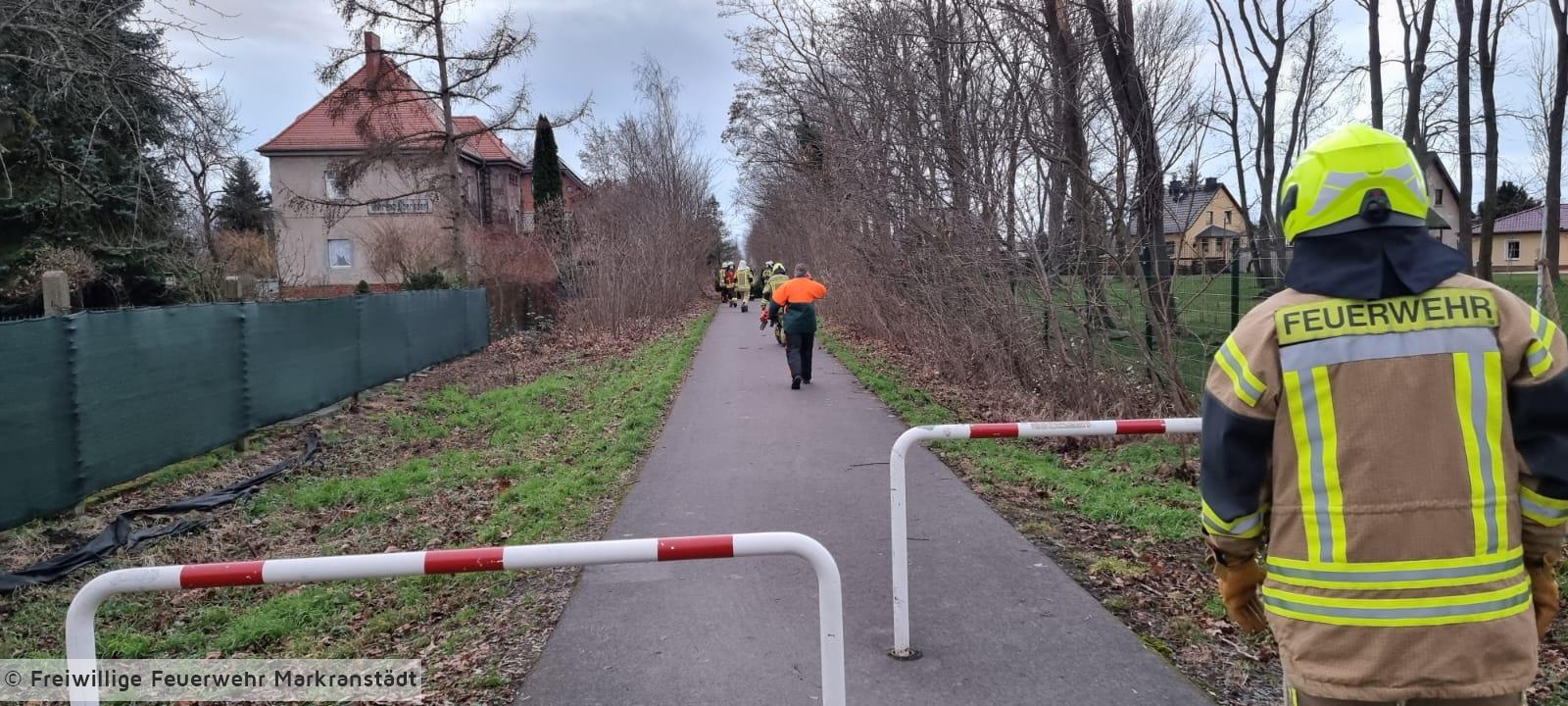 Der umgestürzte Baum wurde mittels Kettensägen zerkleinert und aus dem öffentlichen Verkehrsraum entfernt.