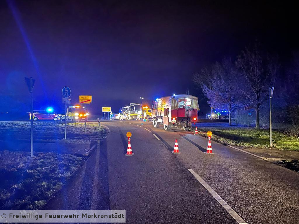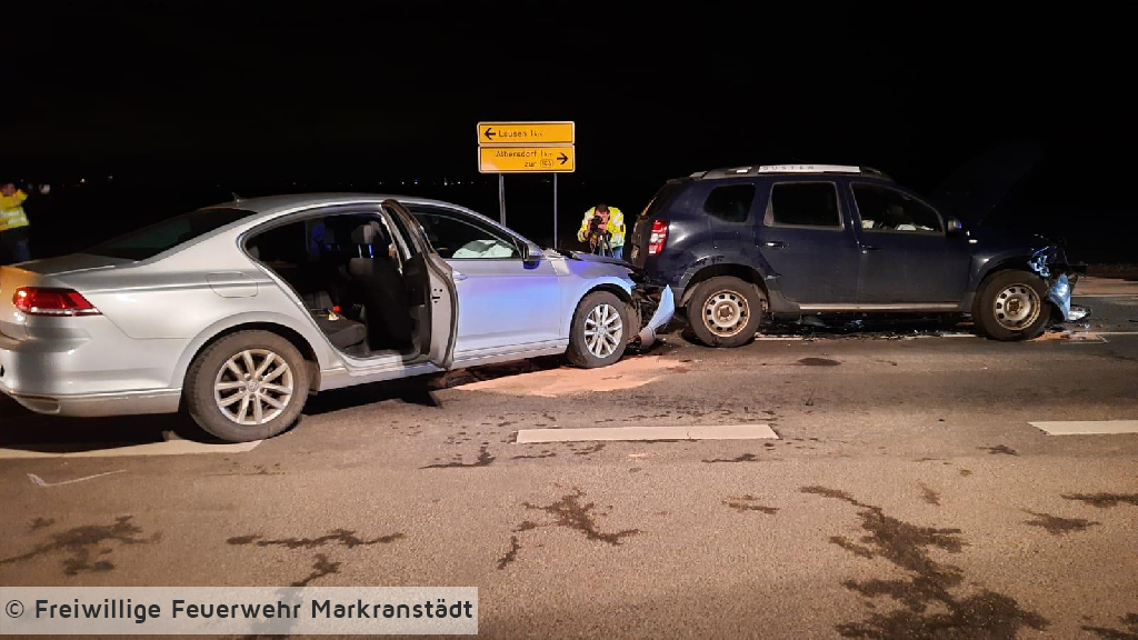 Die eintreffenden Einsatzkräfte fanden am Einsatzort zwei verunfallte Pkw vor. Die verletzten Personen wurden bereits durch den Rettungsdienst versorgt. Die Kameradinnen und Kameraden sicherten die Einsatzstelle, schalteten die betroffenen Fahrzeuge stromlos, banden herauslaufende Betriebsstoffe und nahmen diese auf. Nach Beendigung dieser Tätigkeiten übergaben die Einsatzkräfte die Einsatzstelle an die Polizei.