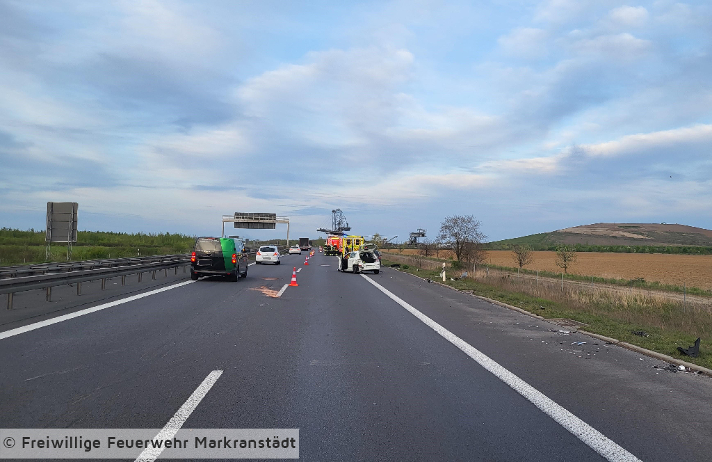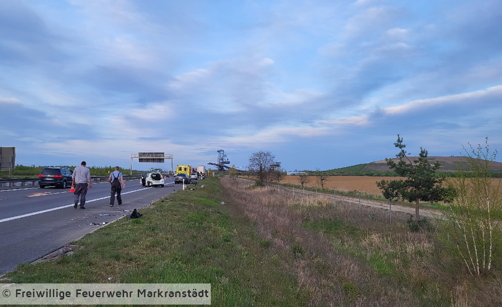 Gemeinsam mit der Berufsfeuerwehr Leipzig wurde die Ortsfeuerwehr Markranstädt zu einem PKW-Unfall auf die BAB38 Richtung Dresden alarmiert. An der Einsatzstelle angekommen, fanden die Einsatzkräfte zwei verunfallte PKW vor. Die Fahrzeuginsassen konnten selbständig ihre Fahrzeuge verlassen und wurden bis zum Eintreffen des Rettungsdienstes versorgt. Im Anschluss wurde die linke Fahrspur beräumt und die Fahrzeuge stromlos geschalten. Nach Abschluss der Tätigkeiten wurde die Einsatzstelle an die Polizei übergeben und alle Kräfte fuhren ihren Ausgangspunkt wieder an.