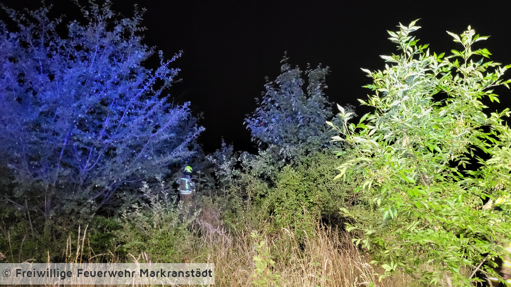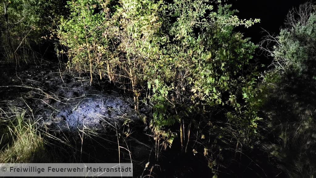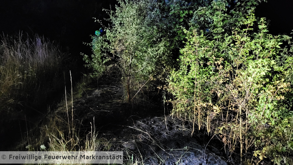 Beim Eintreffen der Einsatzkräfte war der Flächenbrand bereits durch umsichtiges Handeln von Bürgern zu einem großen Teil gelöscht. Die Kameradinnen und Kameraden kontrollierten den Bereich und führten noch eine Restablöschung durch.