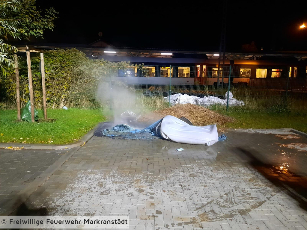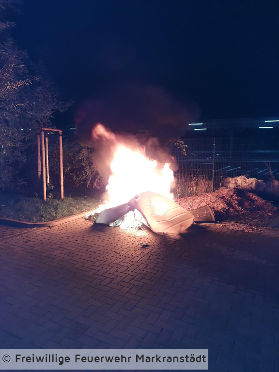 Aus unbekannter Ursache geriet eine mobiles Toilettenhäuschen in Brand. Dieses wurde durch die eintreffenden Einsatzkräfte unter Zuhilfenahme der Schnellangriffseinrichtung des HLF zügig gelöscht. Nach Abschluss der Löscharbeiten wurde die Einsatzstelle an die Polizei übergeben.