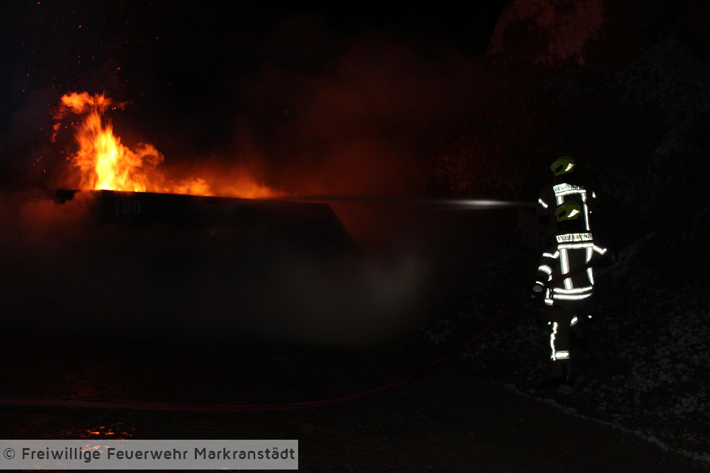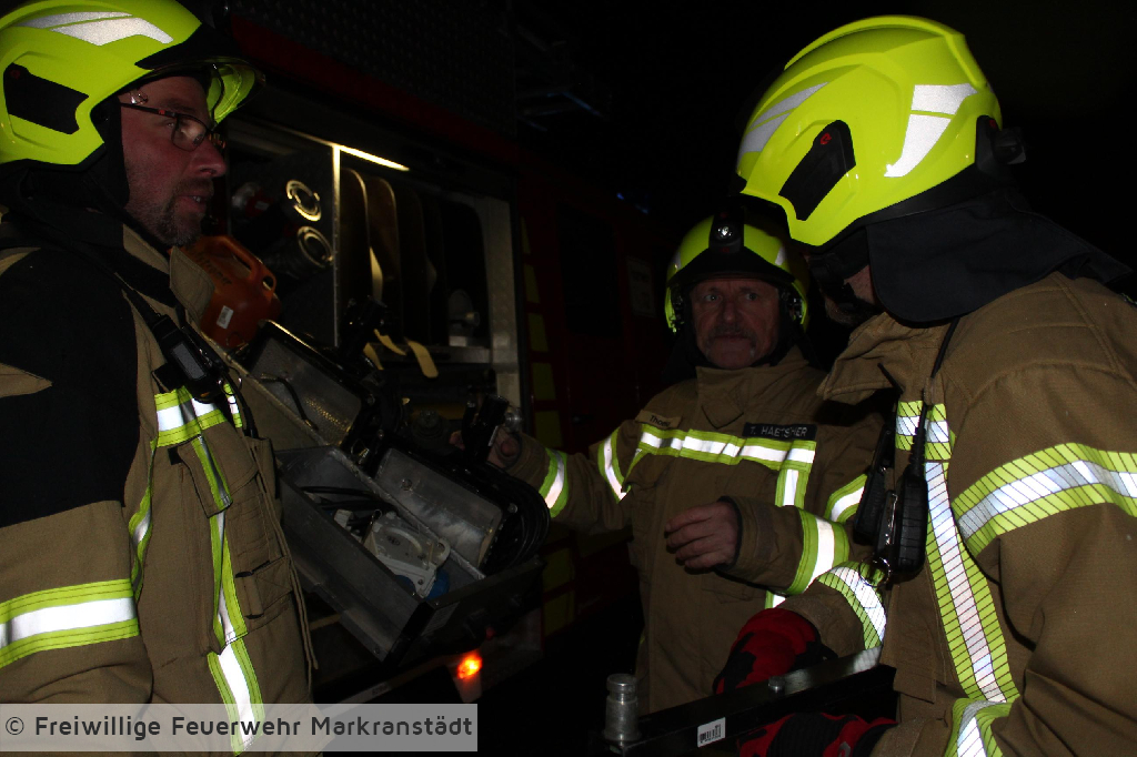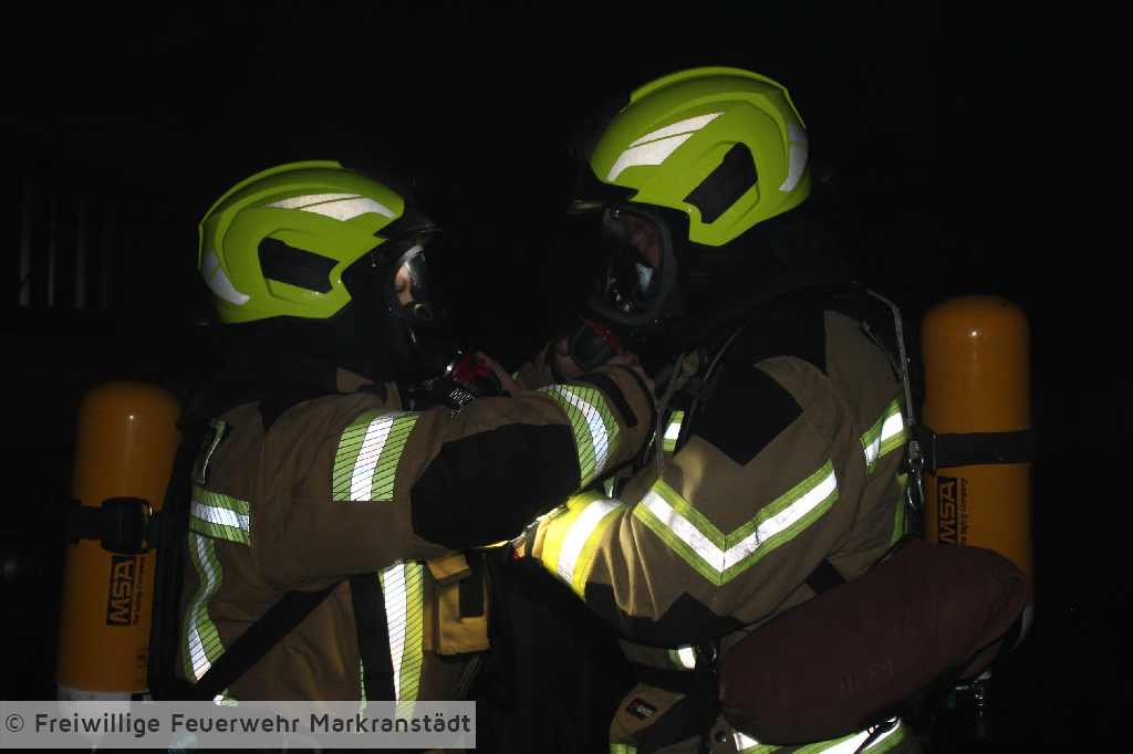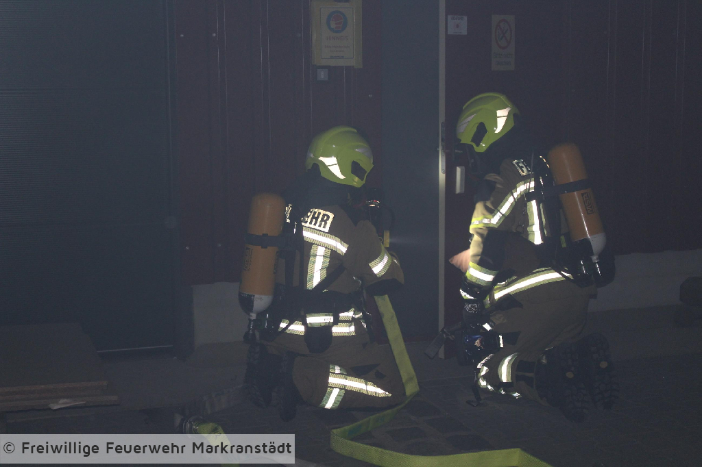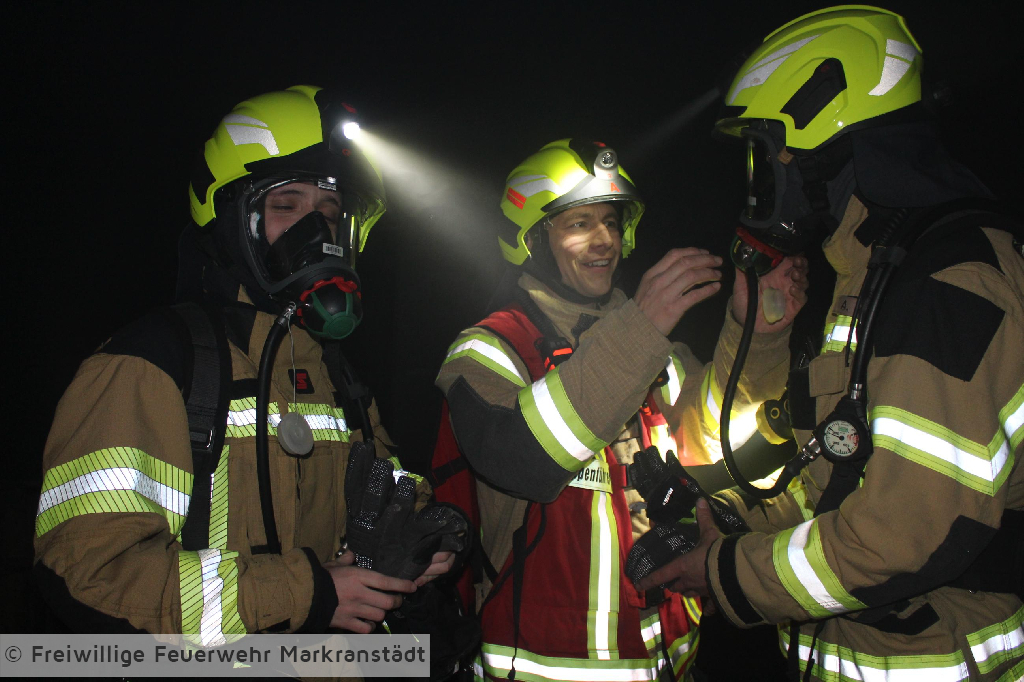 Das eher harmlose Einsatzstichwort wurde nach der ersten Lageerkundung schnell zu einem Gebäudebrand ausgeweitet. Denn die ersteintreffenden Kameradinnen und Kameraden fanden nicht nur einen brennenden Container sondern eine zusätzlich brennende Lagerhalle vor, in der 5 Personen eingeschlossen waren. Nachdem die ersten Maßnahmen zur Personenrettung und Brandbekämpfung eingeleitet wurden entspannte sich die Lage jedoch, als sich herausstellte, dass das Szenario anlässlich der turnusmäßigen Gemeindeverbandsübung inszeniert wurde. Dennoch galt es für die Kameradinnen und Kameraden ihr Wissen auf dem Gebiet der Brandbekämpfung anzuwenden und die eingeschlossenen Personen zu befreien. Wir bedanken uns ganz herzlich beim Bauteam Sauermann die uns ihr Firmengelände zur Verfügung gestellt haben. Dank gilt auch der Stadt Markranstädt für ihre Unterstützung, aber natürlich auch den Kameradinnen und Kameraden für die gezeigte Einsatzbereitschaft.