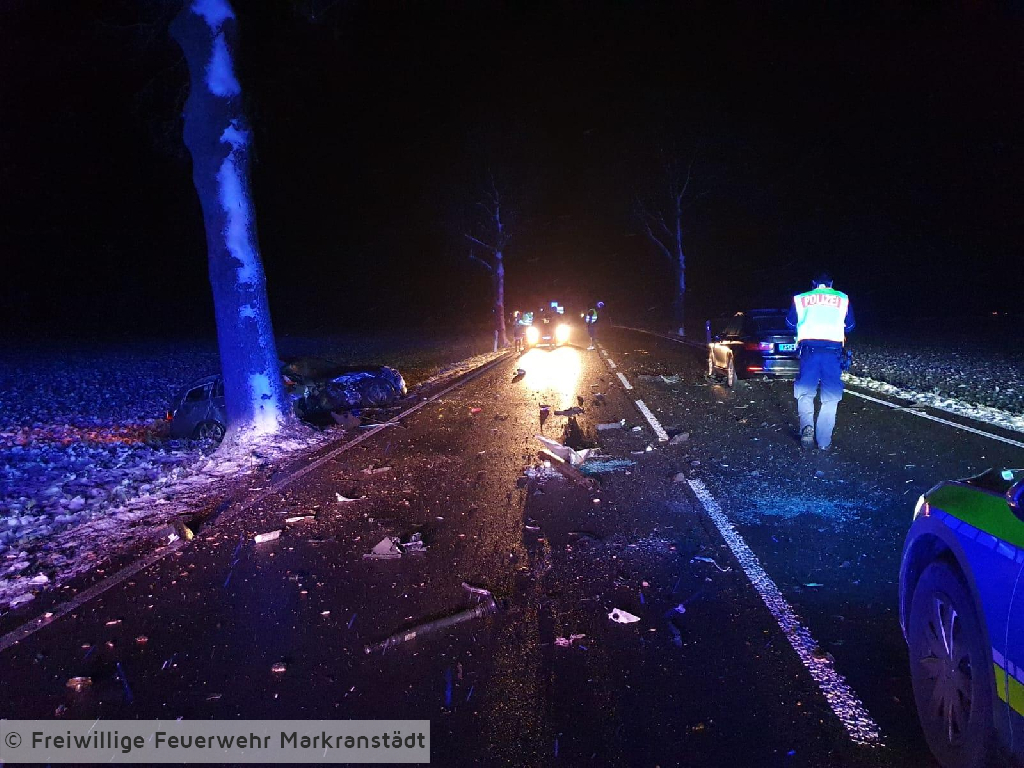 Die Kameradinnen und Kameraden fanden an der Einsatzstelle zwei verunfallte Pkw vor. Entgegen der Alarmmeldung konnte ein Fahrzeugbrand nicht festgestellt werden. Bis zum Eintreffen des Rettungsdienstes übernahmen die Einsatzkräfte die Betreuung der verletzten Personen und kümmerten sich im Anschluss um einen im Unfallfahrzeug befindlichen Hund. Nachdem die Fahrzeuge stromlos geschalten und grobe Verunreinigungen beseitigt waren, wurde die Einsatzstelle an die Polizei übergeben.