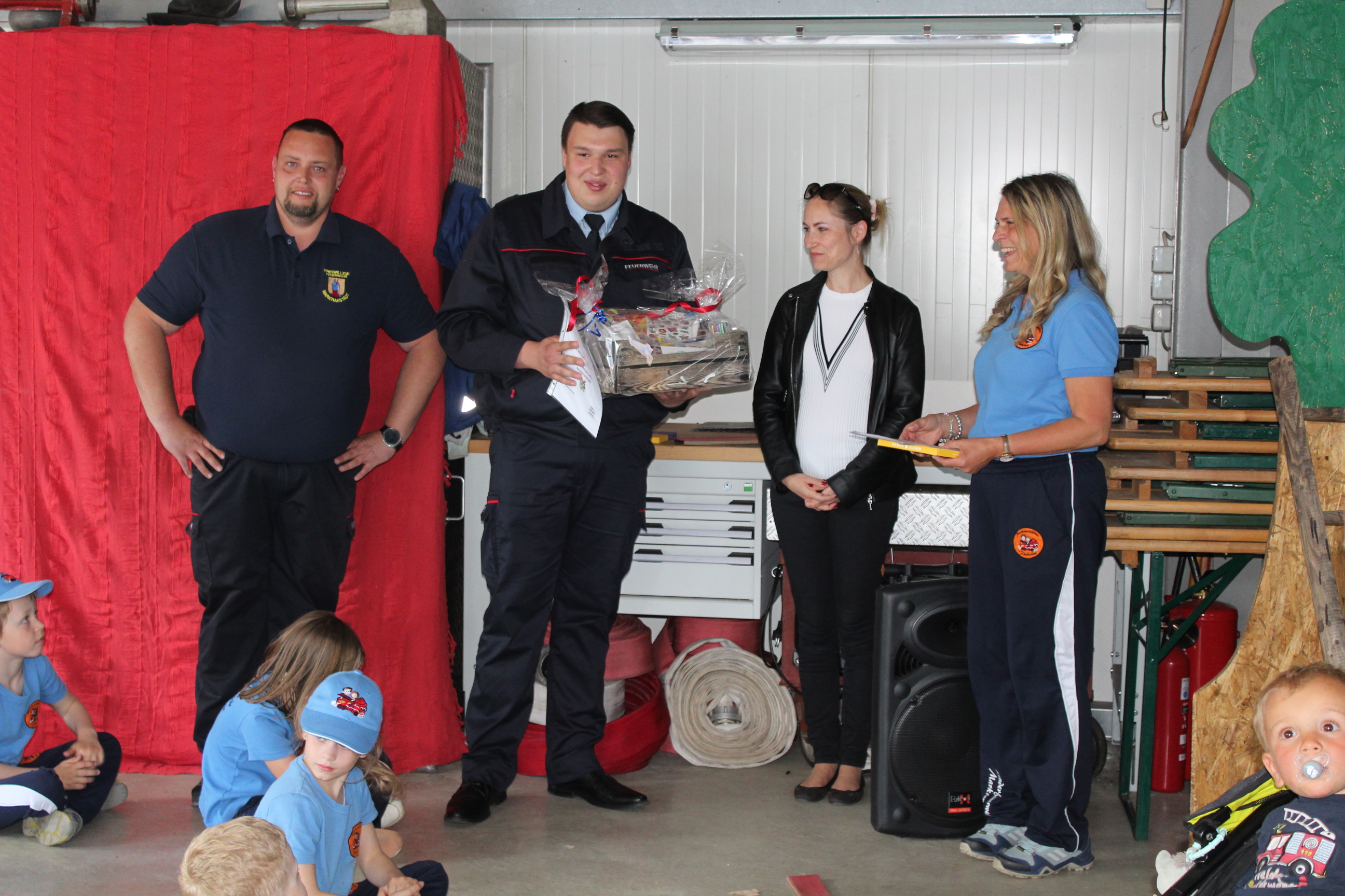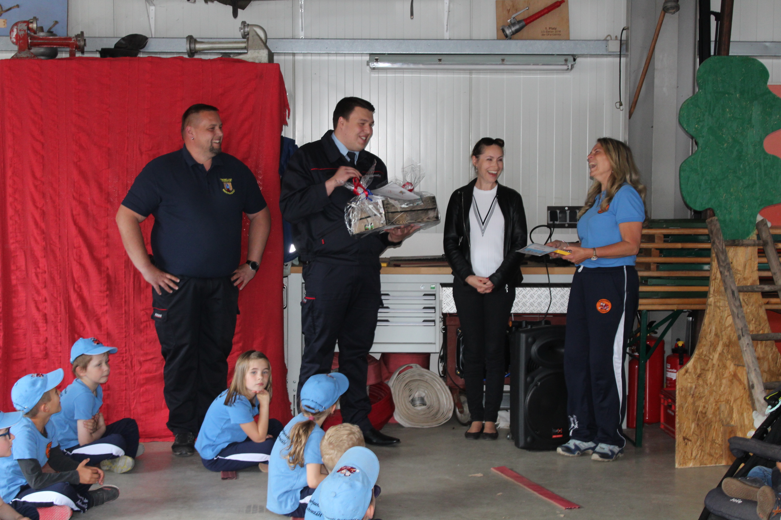 Zunächst besuchten 11 Kinder die Dienste. Doch schnell sprach sich die tolle Arbeit mit Uta und ihrem Team herum, so dass die Kinderfeuerwehr in den letzten Jahren durchschnittlich 22 Mädchen und Jungen als Mitglieder zählen konnte. Die Arbeit der Kinderfeuerwehr führte Kinder in den vergangenen 6 Jahren nicht nur an das Thema Brandschutz heran, sondern begeisterte eine Vielzahl an Kindern dafür, auch in der Jugendfeuerwehr weiter ihren Dienst zu tun! Für die geleistete Arbeit bedankten sich Bürgermeisterin, Nadine Stitterich, und Stadtwehrleiter, Sven Haetscher, und überreichten einen Gutschein für eine riesen Portion Eis, der zu einem der nächsten Dienste einlösbar ist! Für Nachschub an Bastelmaterial sorgten die Vertreter der Kreisjugendfeuerwehr des Landkreises Leipzig und überreichten einen Präsentkorb, verbunden mit den besten Wünschen für die Zukunft.