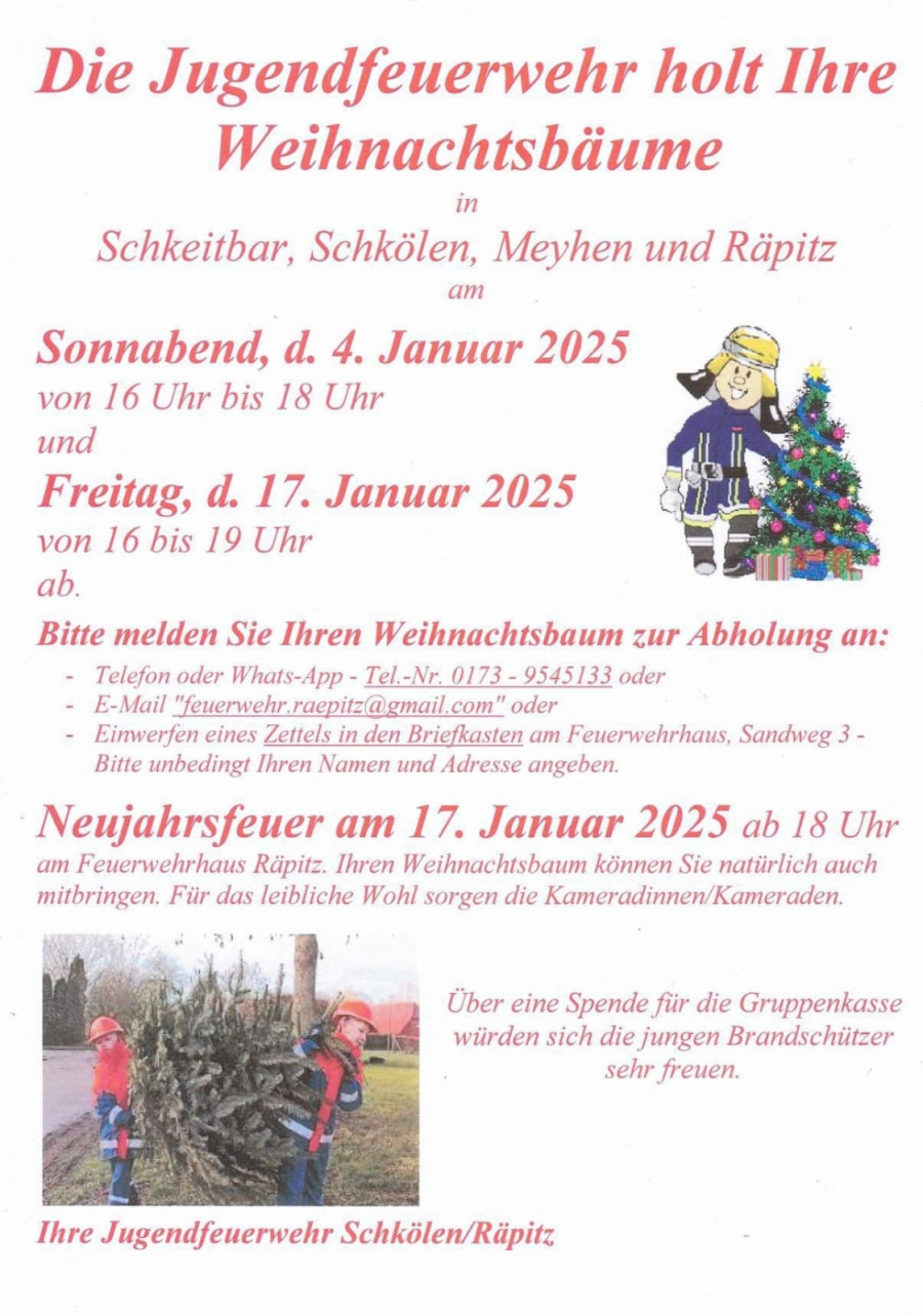 Die Jugendfeuerwehr Schkölen/Räpitz holt Ihre Weihnachtsbäume