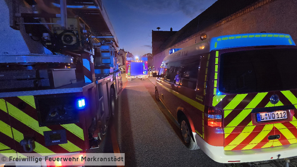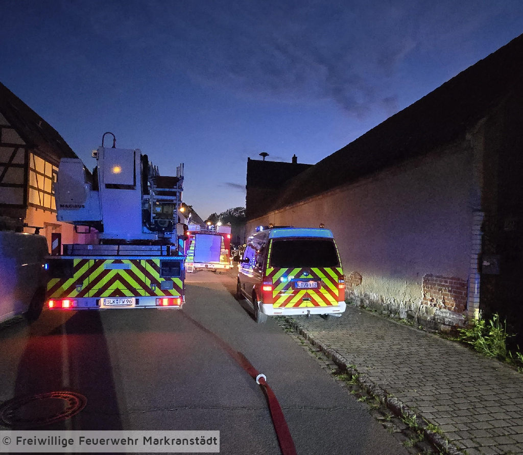 Am 10.05.2025 wurde die Feuerwehr gegen 21:00 Uhr zu einem Scheunenbrand alarmiert. Vor Ort bestätigte sich die Lage. Aus ungeklärter Ursache, kam es im Heizungsraum der Scheune zu einem Brand. Ein Trupp unter Atemschutz nahm umgehend die Brandbekämpfung mit einem C-Rohr vor. Durch das schnelle und gezielte Eingreifen der Einsatzkräfte konnte das Feuer zügig unter Kontrolle gebracht und gelöscht werden. Der betroffene Bereich wurde anschließend auf Glutnester mittels Wärmebildkamera kontrolliert. Eine Person wurde mit dem Verdacht auf eine Rauchgasvergiftung zur weiteren medizinischen Abklärung in ein Krankenhaus gebracht.