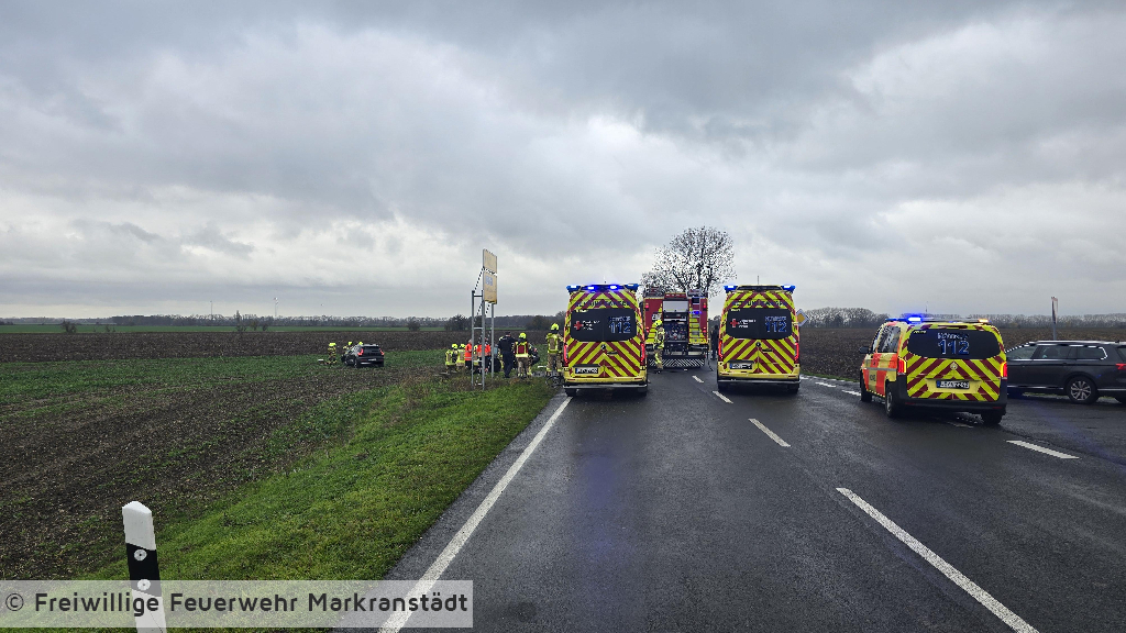 Am Donnerstagvormittag wurde die Feuerwehr zu einem Verkehrsunfall zwischen zwei Pkw alarmiert. Beim Eintreffen der ersten Kräfte bestätigte sich die Meldung, eine Person war in einem Fahrzeug eingeklemmt. In enger Absprache mit dem Rettungsdienst begann die Feuerwehr unmittelbar mit der technischen Rettung. Durch den koordinierten Einsatz der Kräfte konnte die eingeklemmte Person zügig und schonend aus dem verunfallten Fahrzeug befreit und an den Rettungsdienst übergeben werden. Anschließend führten die Einsatzkräfte weitere Sicherungsmaßnahmen durch, darunter das Batteriemanagement sowie die Kontrolle auf auslaufende Betriebsstoffe. Nachdem die Unfallstelle gesichert und alle notwendigen Maßnahmen abgeschlossen waren, wurde diese an die Polizei zur weiteren Aufnahme übergeben.