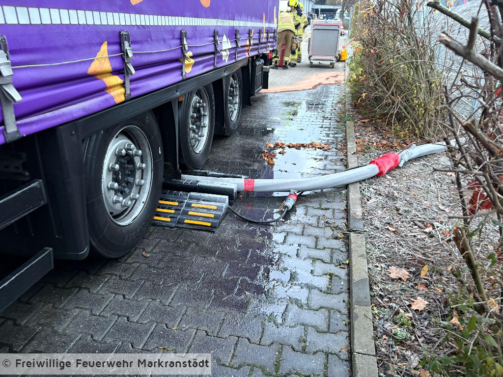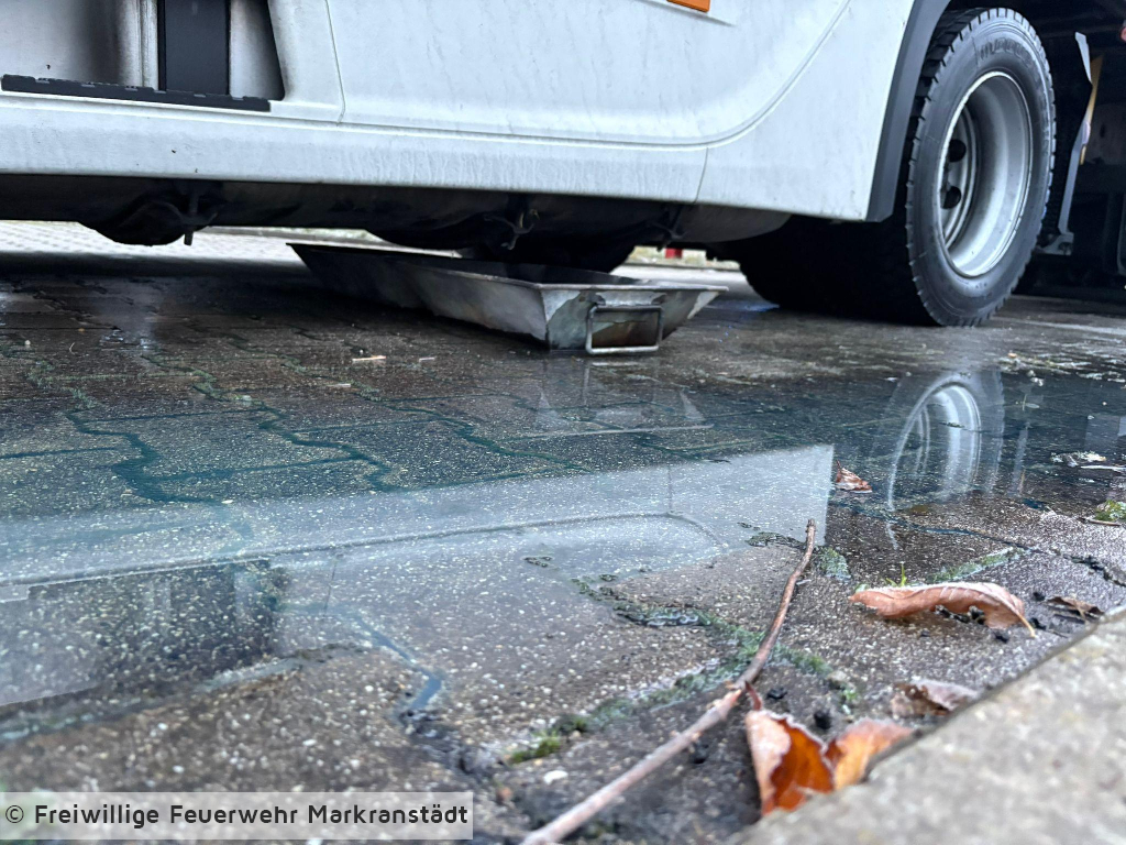 Am Freitagmorgen wurde die Feuerwehr zu einem Einsatz aufgrund eines aufgerissenen Dieseltanks an einem Lastkraftwagen alarmiert. Der Vorfall ereignete sich gegen 07:15 Uhr, als aus bisher unbekannter Ursache der Tank des Fahrzeugs beschädigt wurde und größere Mengen Diesel austraten. Beim Eintreffen der Einsatzkräfte war der Dieseltank bereits leer gelaufen. Eine zunächst alarmierte Gefahrguteinheit konnte nach erster Lageerkundung wieder abbestellt werden. Zur technischen Unterstützung wurde eine Spezialunternehmen nachgefordert. Die Feuerwehr begann umgehend mit Maßnahmen zur Eindämmung der Umweltgefahr. Mit Hilfe von Ölsperren und Bindemitteln wurde der ausgelaufene Kraftstoff gesichert und eine Ausbreitung verhindert. Gegen 08:24 Uhr konnten die Einsatzkräfte „Abschluss der Maßnahmen“ melden. Die Einsatzstelle wurde anschließend an den Eigentümer des Objektes übergeben, der die weitere Abwicklung gemeinsam mit dem Spezialunternehmen übernahm.
